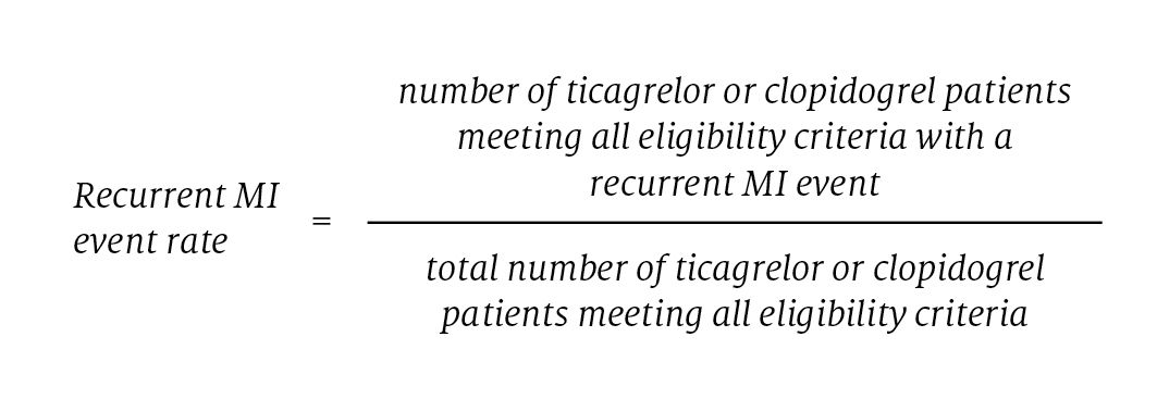 4. Patients were required to be treated with discrete use of either ticagrelor or clopidogrel to ensure no mixing effects, and they were followed until their second MI event or for the remainder of the contract period, whichever occurred first.