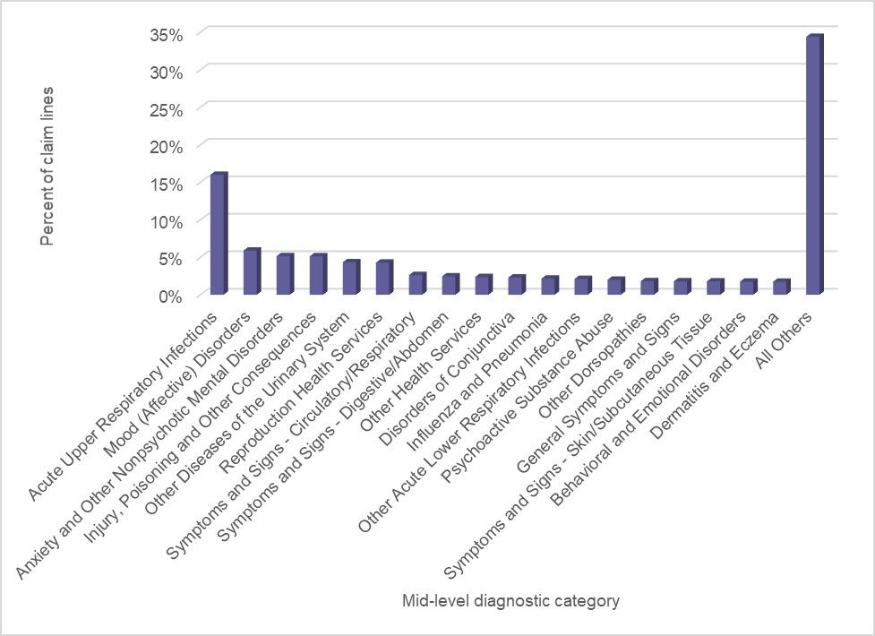 Table 3. Distribution of Non-Hospital-Based Provider-to-Patient Telehealth Claim Lines by Mid-Level Diagnostic Category, 2018
