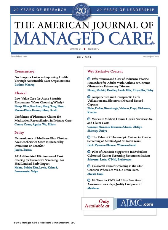 The authors would like to acknowledge Suraj Rajasimhan, PharmD, for his contribution to this study.Author Affiliations: Jefferson School of Population Health (DC, JC), Philadelphia, PA; Christiana Care Value Institute (RA, PW, DJE), Newark, DE; Department of Medicine, Christiana Care Health System (DJE), Newark, DE.